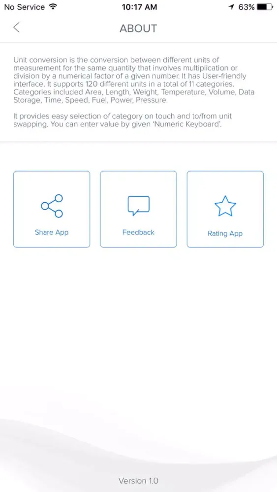 Unit conversion is the conversion between different units of measurement for the same quantity that involves multiplication or division by a numerical factor of a given number. It has User-friendly interface. It supports 120 different units in a total of 11 categories. Categories included Area, Length, Power, Velocity, Volume, Weight, Time, Fuel, Temperature, Data Storage, Pressure.