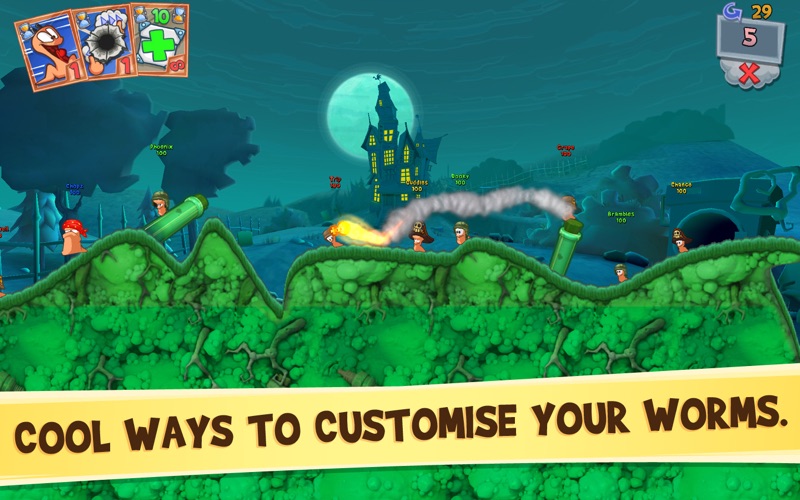 Enlist your perfect battle combination as you choose your worms from a new ‘Class’ system - Heavy, Scientist, Scout and classic Soldier. Each has their own unique skill and ability. Which will fit in with your style of play?