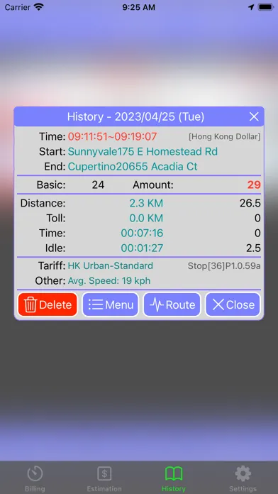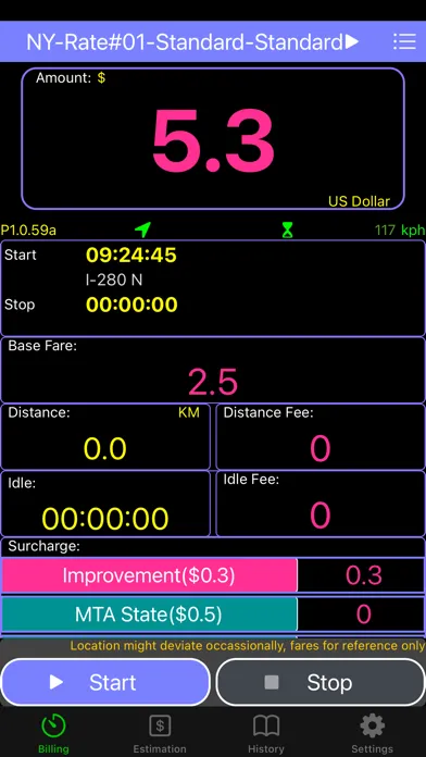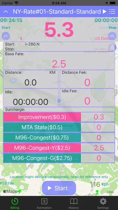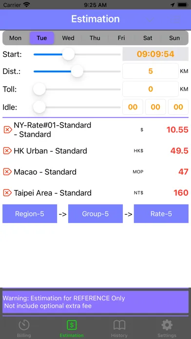 Base on tariff(rate), calculate the approximate fares via distance measured and/ time consumed, real-time or estimation; such as taxi, designated driver, tow truck, etc.