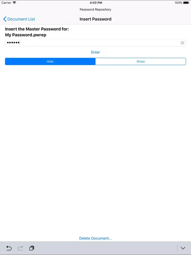 - Password Repository 3 is document based. You can manage and move how many documents you like even on iOS.