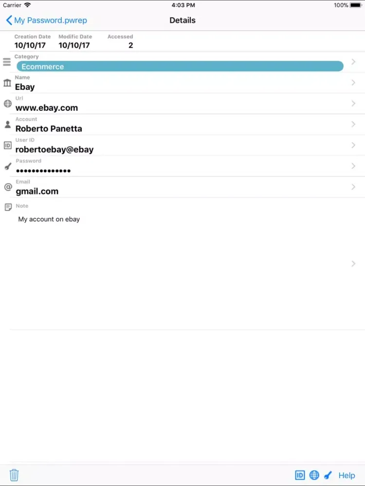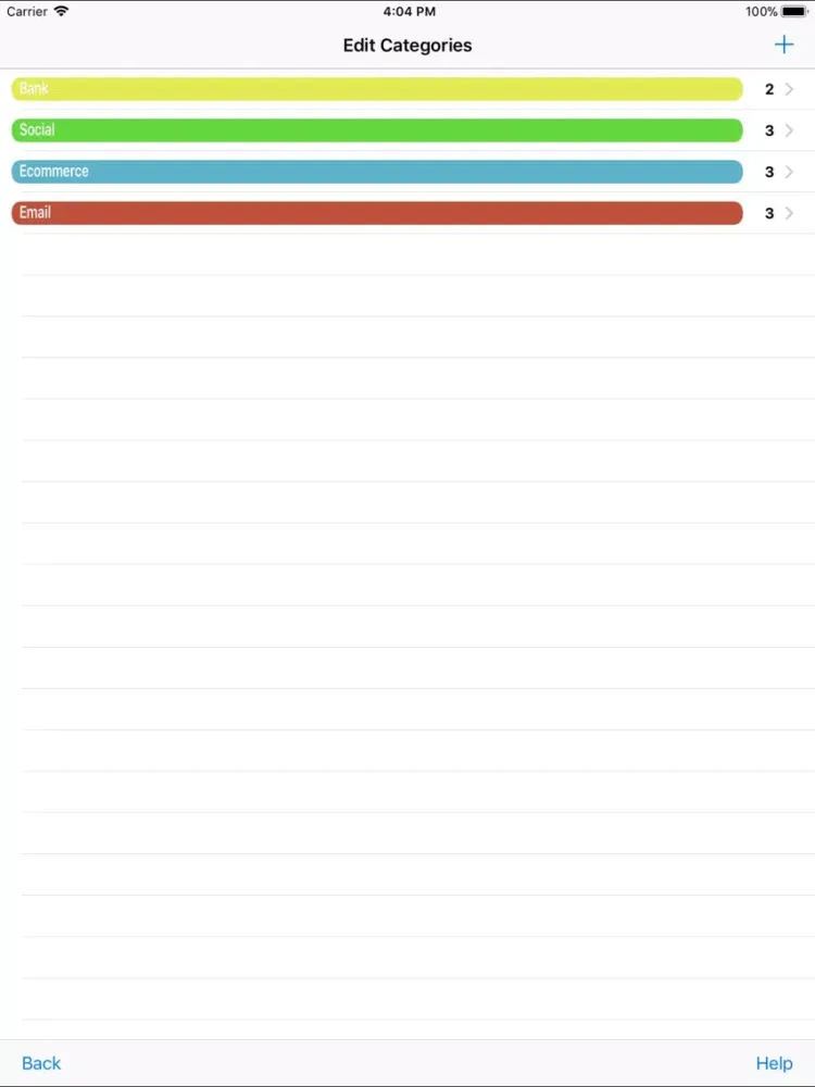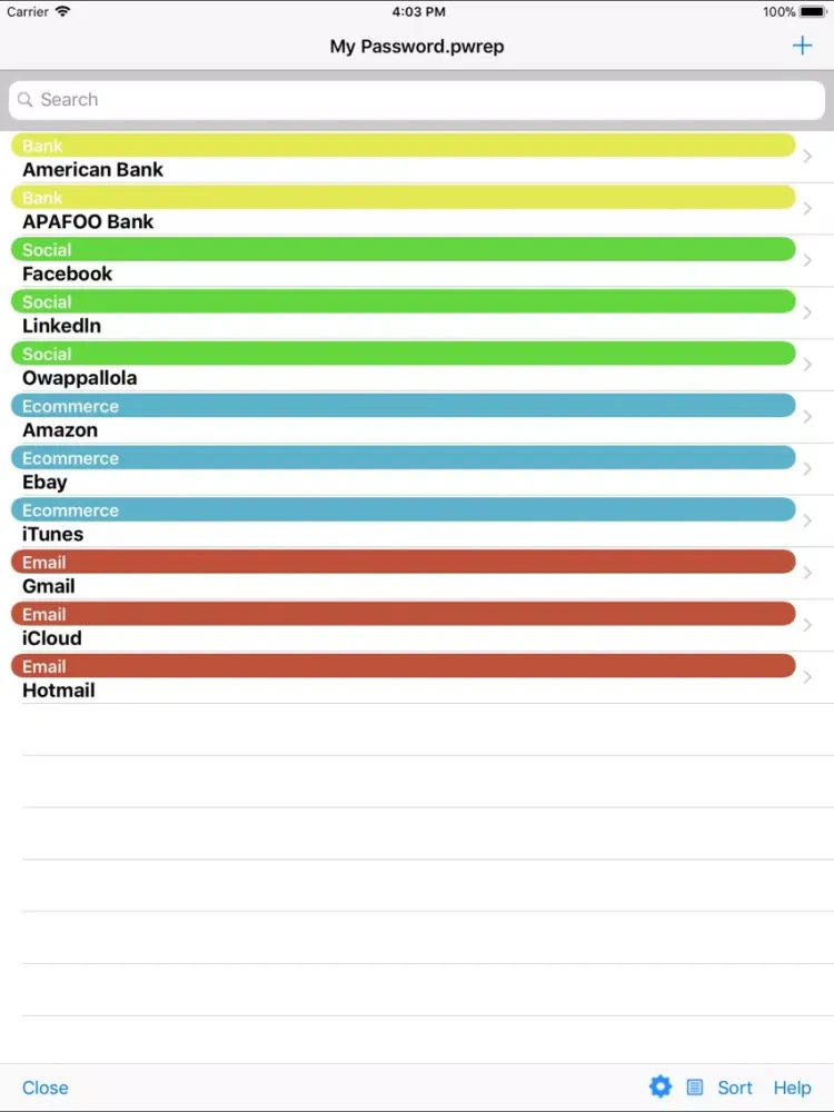 Password Repository allows to manage all the password and associated data in a true iOS environment with multiple panels