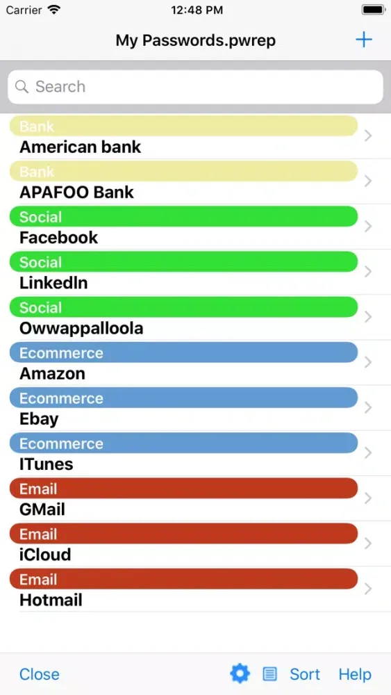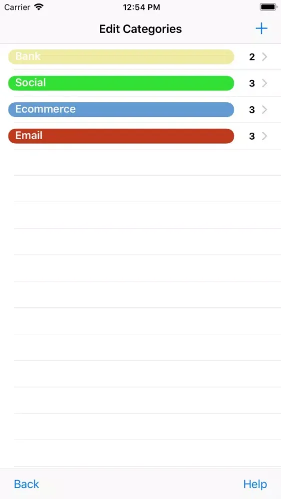 With categories, browsing your passwords, you have a subdivision of your data 'by color' very easy to manage from the first day of use.