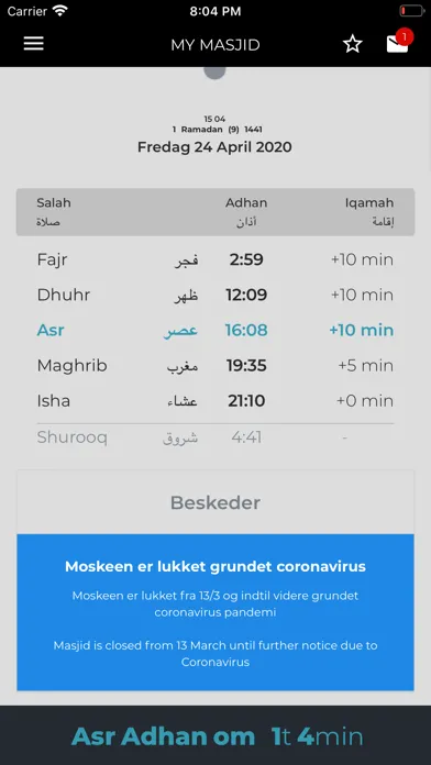 •Any important message(s) from masjid (we call it Alert messages, displayed with a blue background)