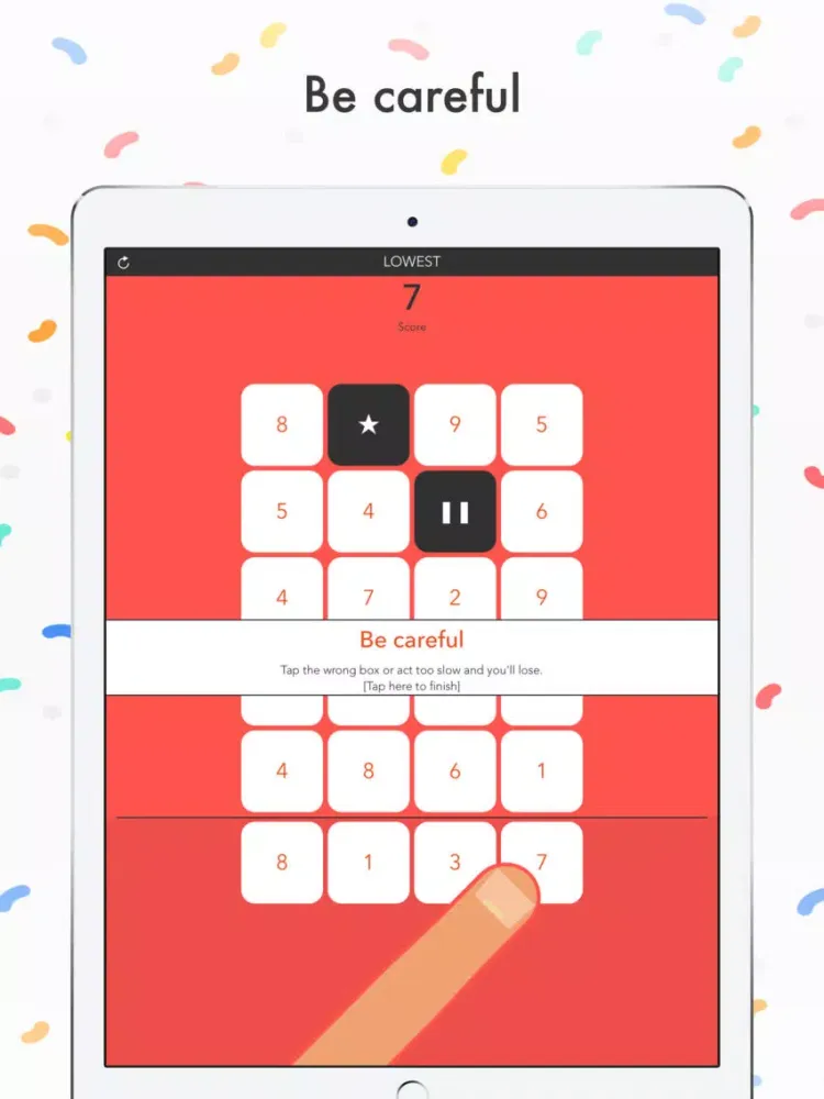 Be careful, DON'T TOUCH THE WRONG TILE! The core rule of this addictive game is to touch the lowest numbered tile. Sounds easy? The game speeds up to give you less time to make a decision as your score rises. Give it a try, and see how well you compare against your friends.