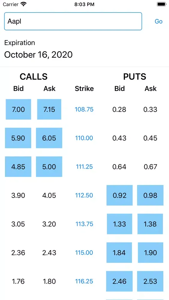 * Near-Real time options pricing data