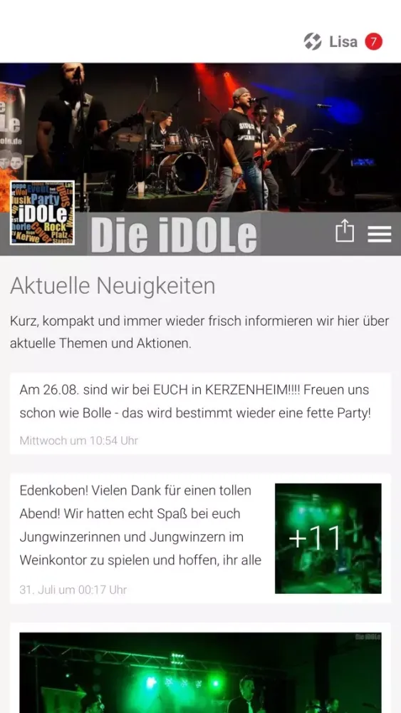 Du möchtest immer die aktuellen News, Mitteilungen, Bilder & Veranstaltungshinweise der Partyrockband "Die iDOLe"?