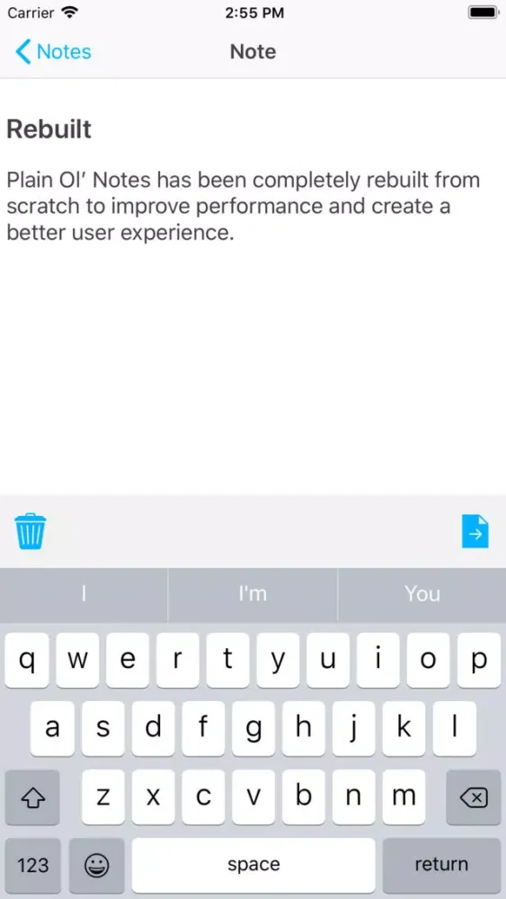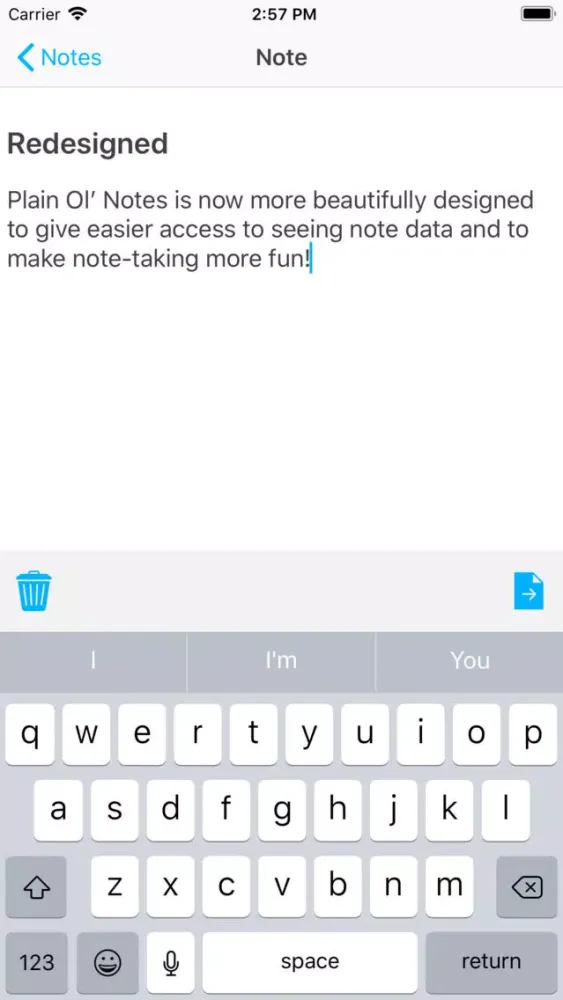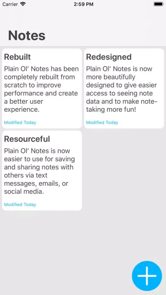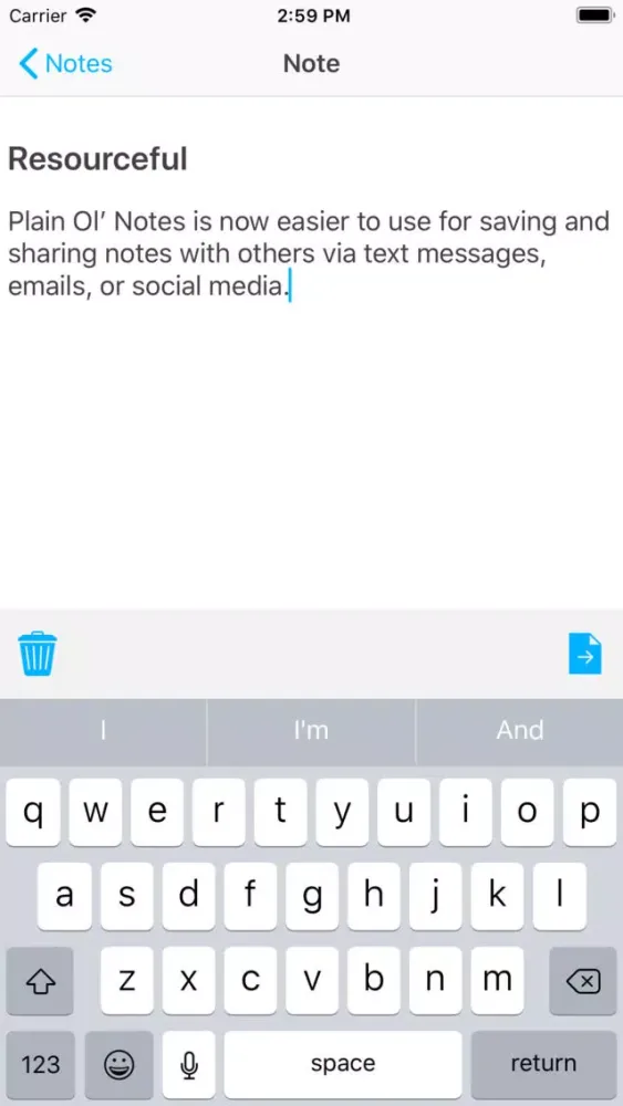 Plain Ol' Notes is a simple note-taking app. Save your notes and view them later. Share notes in an email, text message, Facebook, or Twitter.