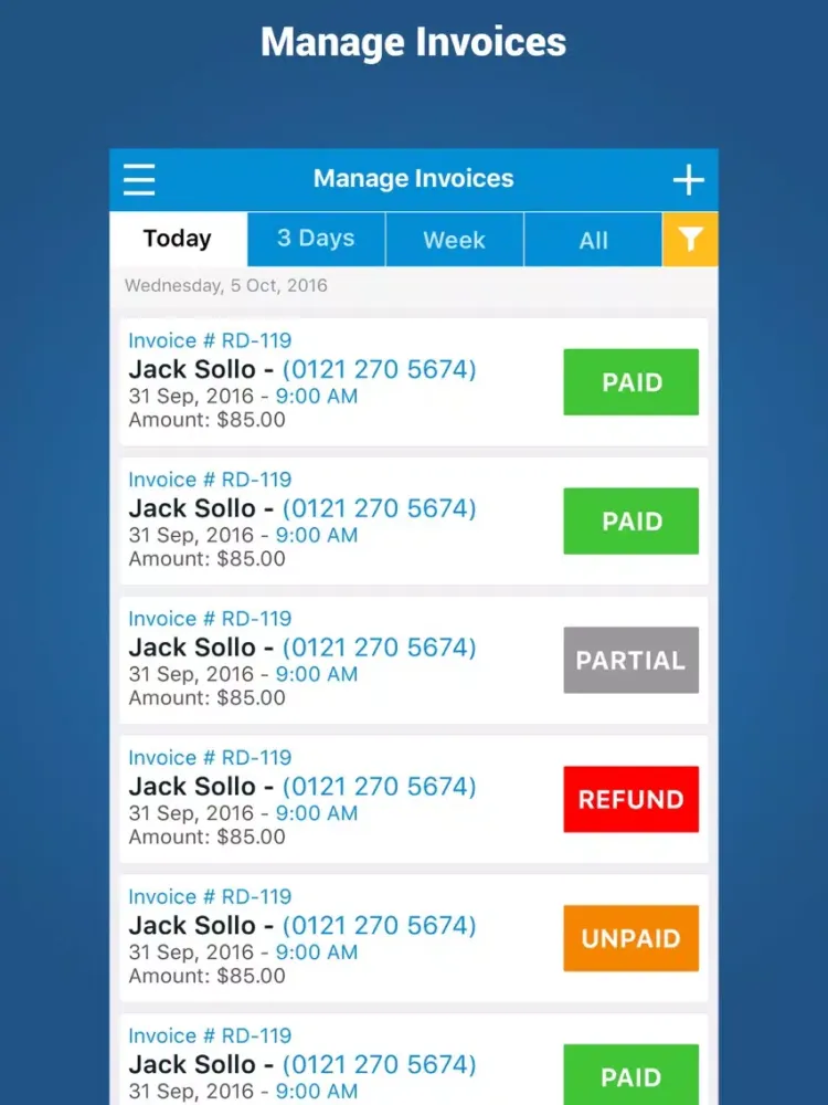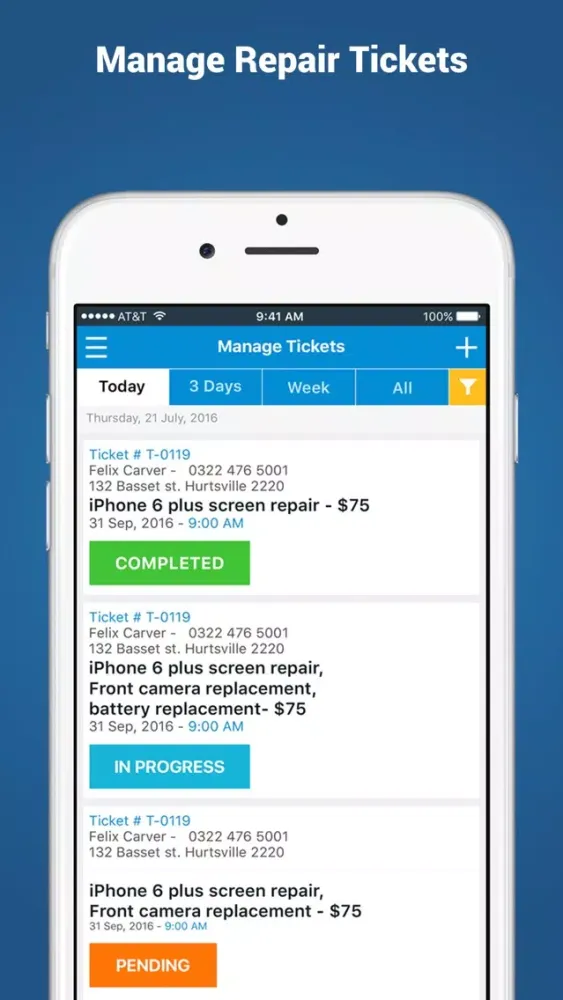 With this easy-to-use app, create repair tickets, assign parts and print receipts on the go. Create manual invoices or convert any repair ticket to an invoice within a couple of seconds. Accept card payments with Square, which is leading integrated payment services provider around the world.