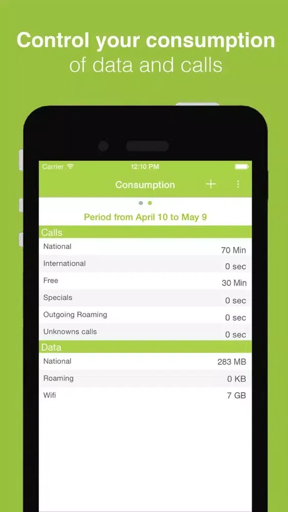 This app allows you to introduce as many different counters as you wish, to get the so far usage on any type of data or call you want track.