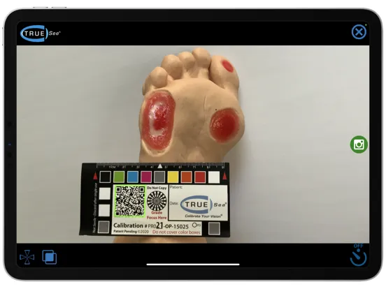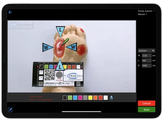 TRUE-See’s patented color calibration and electronic measurement system sets the standard of image integrity and consistency to improve patient’s satisfaction, documentation compliance, and even reduce denials. Utilizing artificial intelligence, the App automates many steps and effortlessly guides the user to produce certified images with consistent measurements that effect patient care, billing and auditing.