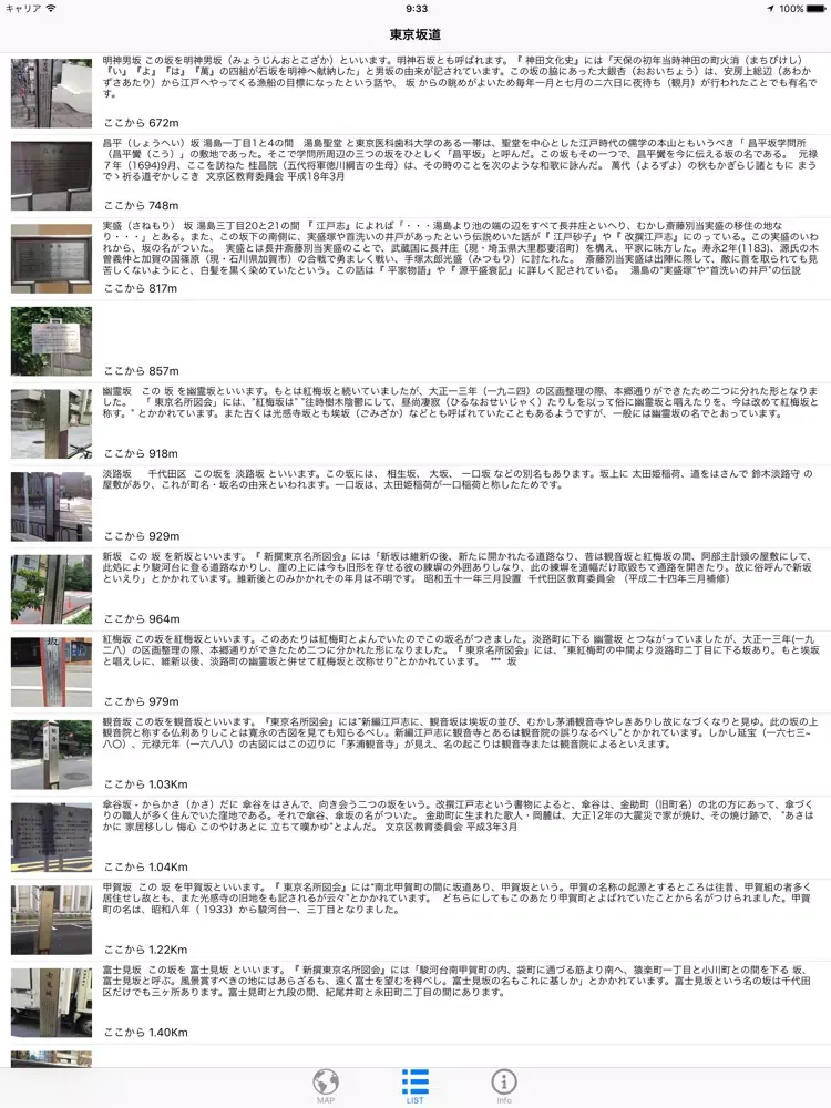 「東京坂道」は、東京都内の坂道に設置された案内板情報のまとめアプリです。