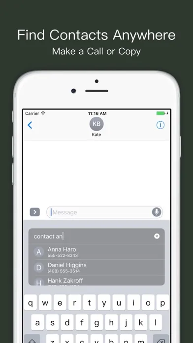 • Find for contacts in any place where you can pop up the keyboard, copy contact information, or make a direct call