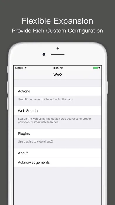 WAO is a efficiency application based on keyboard, use the built-in input box, through the「ommand + parameters」way to expand more features: