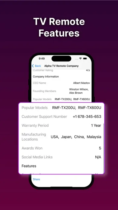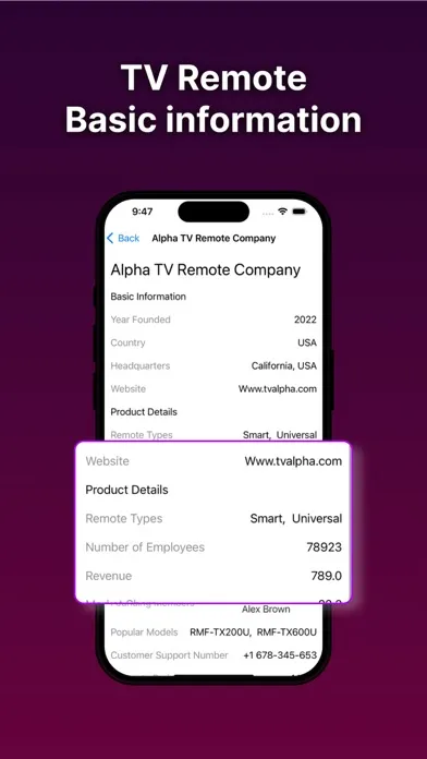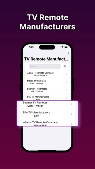 Add, share, delete, search and manage information about TV remote manufacturers, including company details and product features.
