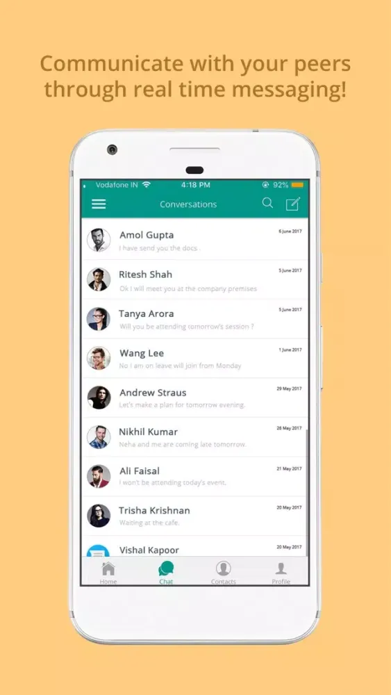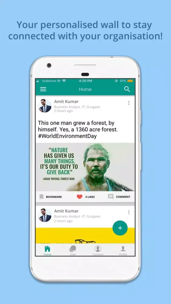 Know more about the people who you work with in the organization. Professional and personal information like your educational qualification, work experience,birthday etc are all in one place. You get the options to call ,chat,email,recommend,appreciate ,assign tasks from the users profile also.