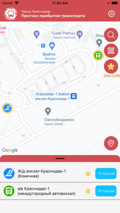 Приложение позволяет получать информацию о любых видах наземного транспорта. Есть возможность поиска остановки, как по наименованию, так и по QR-коду, при его наличии.