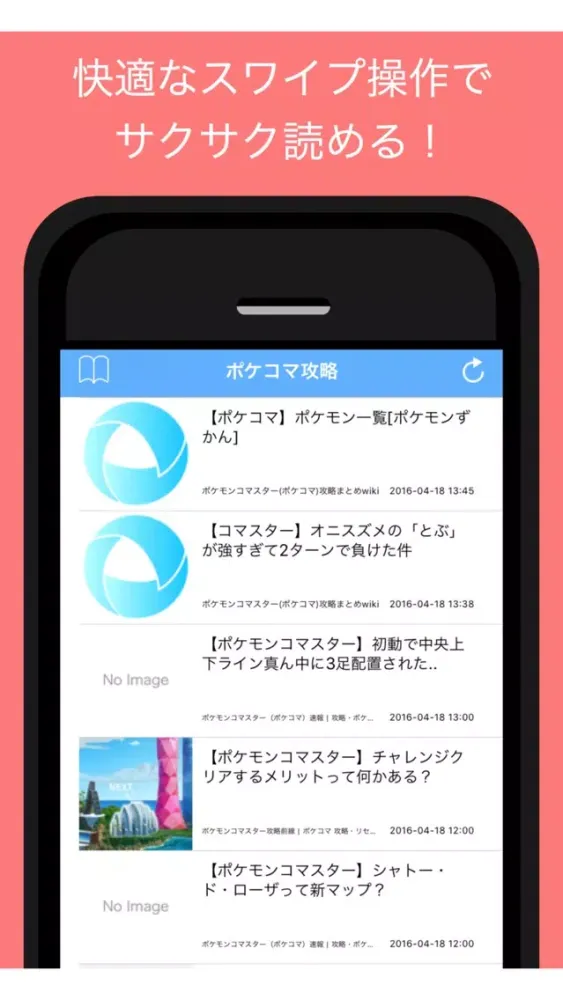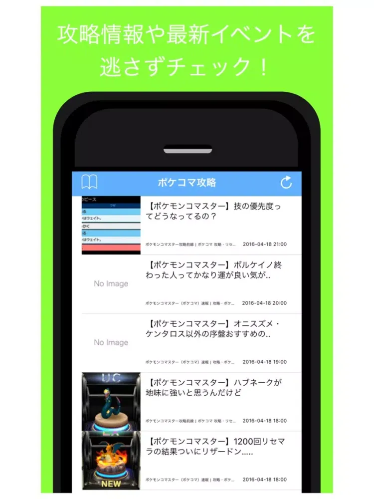 シンプルでわかりやすいUIと簡単操作でサクサク読めるポケモンコマスターの情報に特化した無料の攻略アプリです。
