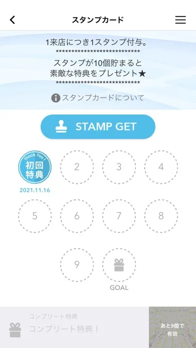 アプリ内にスタンプが貯められます。