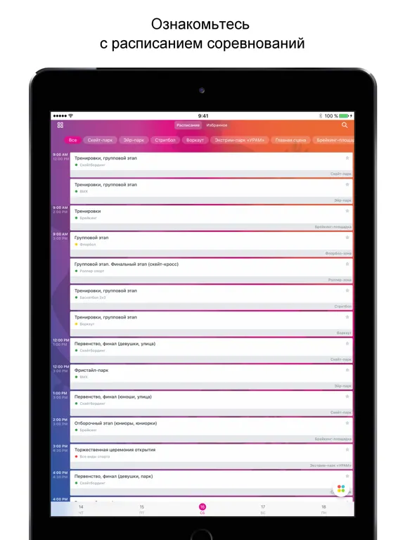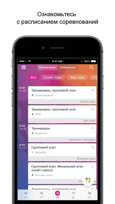• следить за обновлением расписания соревнований в режиме реального времени;