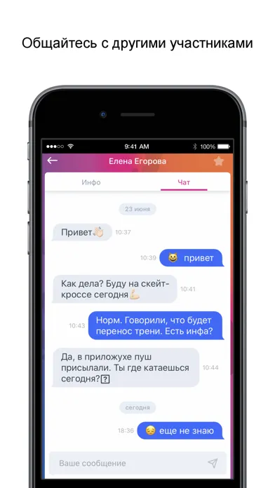 • общаться с другими участниками через приложение.
