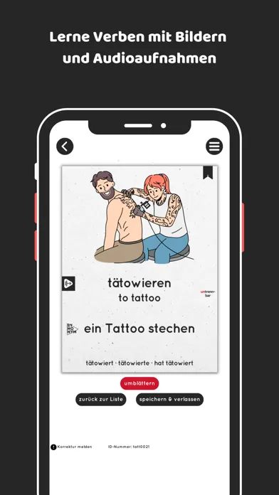 Diese App ist für alle, die Deutsch lernen möchten. Mit Bildern, Audioaufnahmen und Beispielsätzen können Sie die deutsche Verben leicht und spielerisch lernen.