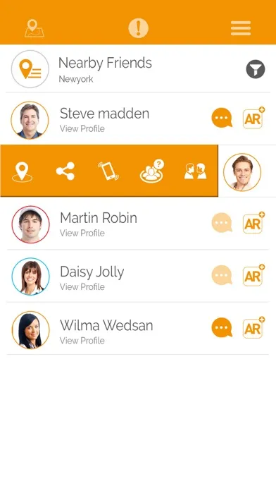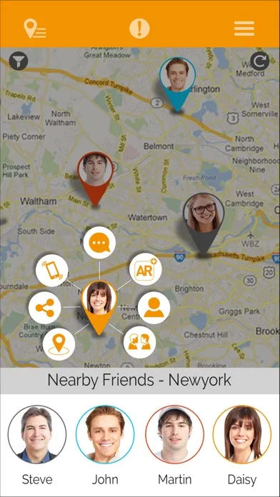 c. Nearby friends: upon login the user will be shown their location on the map with friends around them. Since this would be a first time login the user will require to add friends.