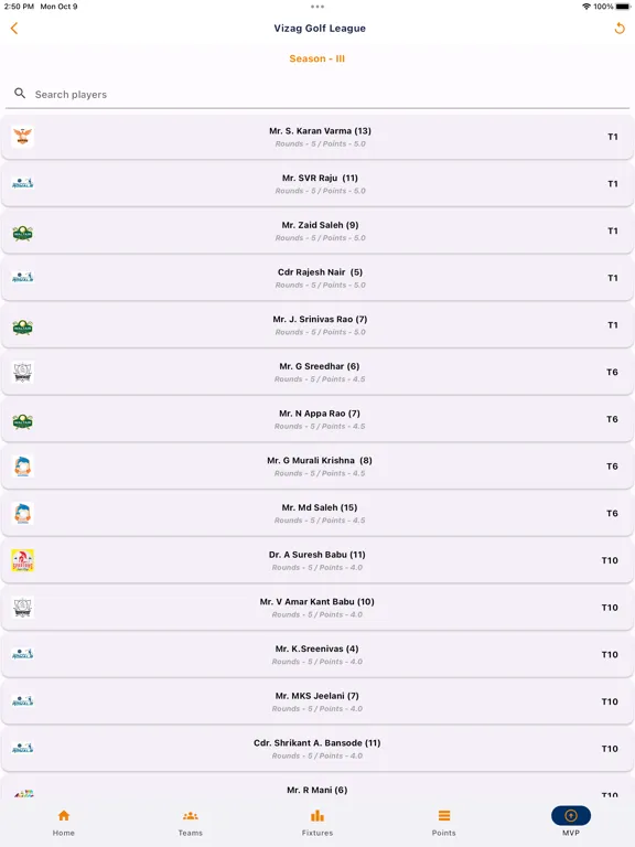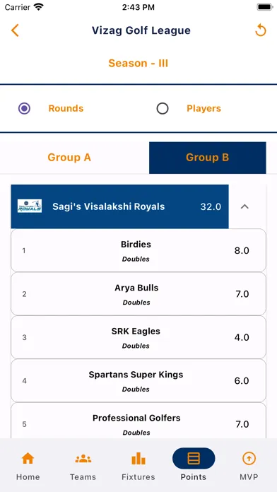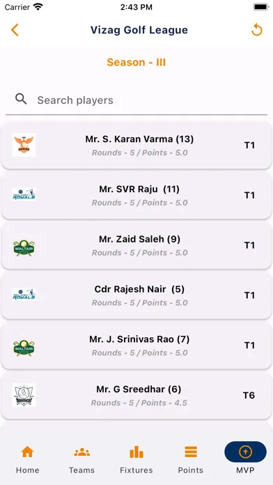 Live Scoring Mobile App for Vizag Golf League - Season III