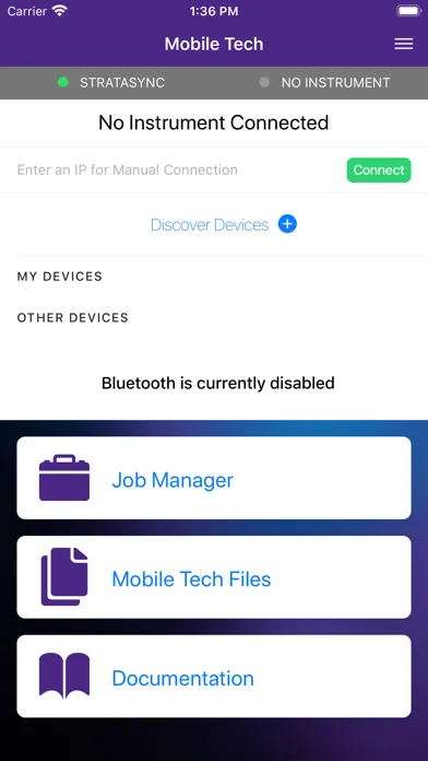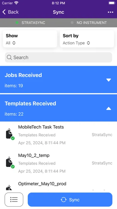 VIAVI Mobile Tech is a technician productivity app that automates synchronizations with StrataSync for VIAVI test instruments. Test results are automatically backed up in the cloud and new limit plans and configurations can be deployed to individual technicians from StrataSync. Up-to-date manuals, quick cards, training videos, and technical support can be accessed on demand within the app. Test results are further enhanced with geolocation data to help associate technician work with customer locations. A File Manager allows test reports to be dowloaded from the instrument and sent to other mobile apps including email. SmartAccess Anywhere codes can be shared via SMS and email. Test instrument interfaces can be viewed from your mobile device.