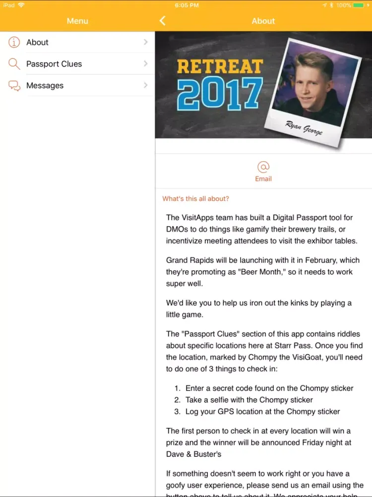To help celebrate an awesome 2017 at our annual retreat, we're using our recently develop digital passport functionality to run a scavenger hunt!