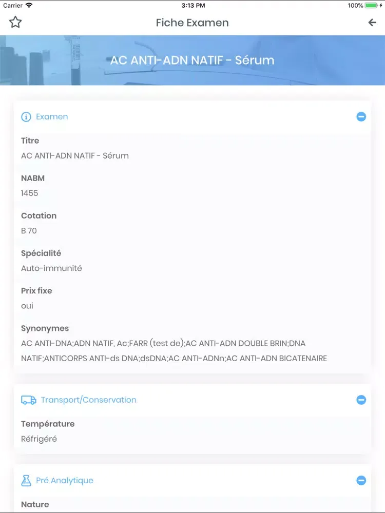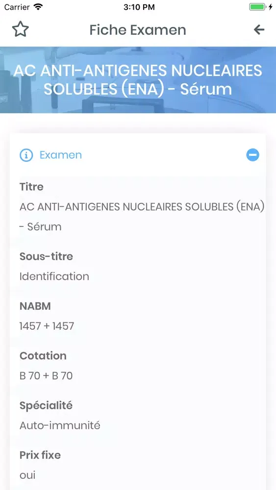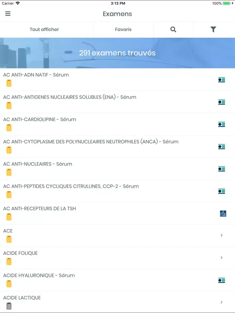 Afin de simplifier vos futures recherches, une mise en favoris des analyses est disponible.