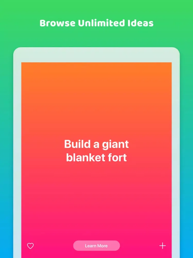 Launch the app, browse unlimited random ideas, like them, and get moving. We have plenty of cool ideas that require minimum effort.