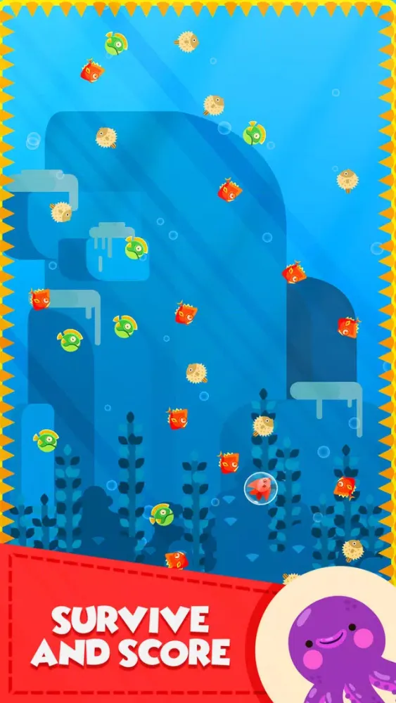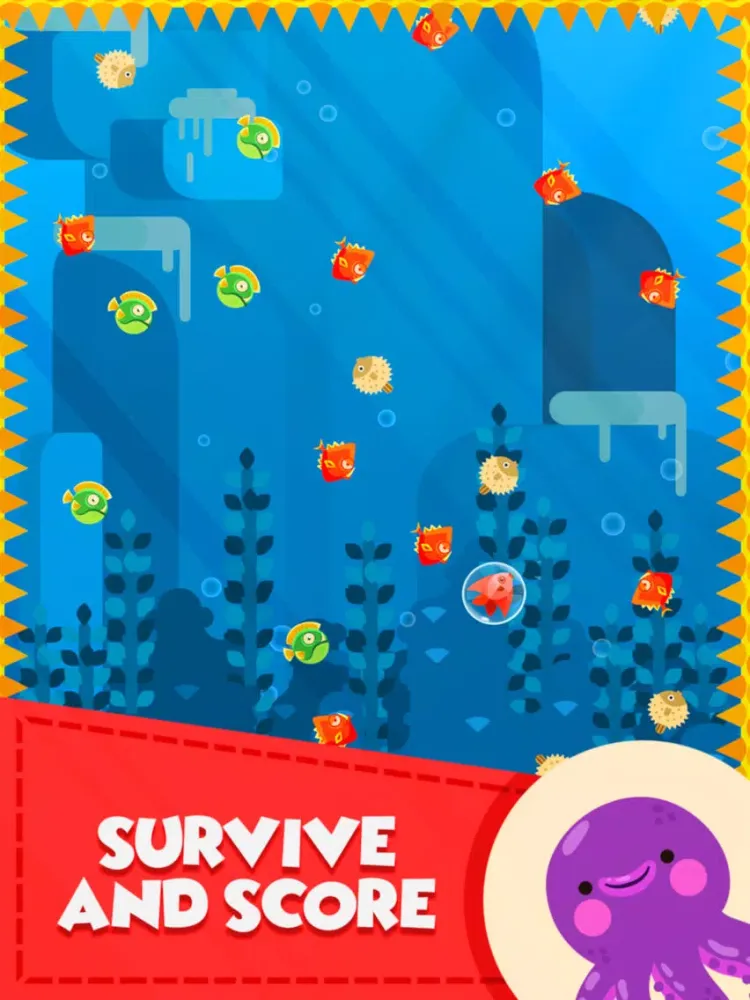 Welcome to the under water world fish game. All you have to do is tap to rotate your fish to the right side. Escape all other invader fish as bumping in them will result in game over. Dodge the invader small fish and gather as many points as possible to hit the top score.