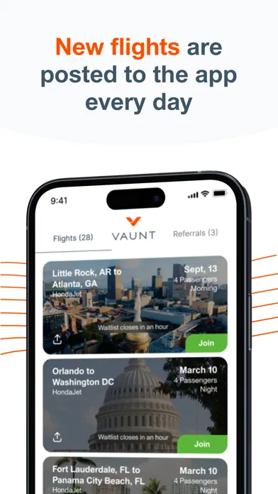 New flights are posted to the app every day. Simply click “join” to join the waitlist for any flight.