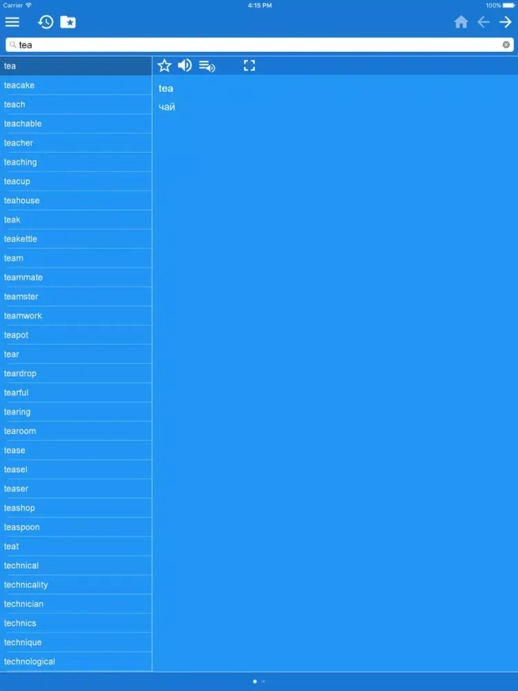 2. Favorites – you are able to add words to favorites list by clicking the “star” icon.