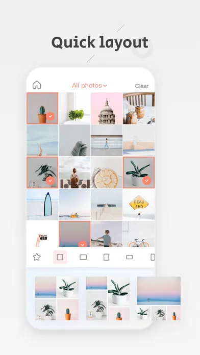 Choose 1 to 9 photos, switch between square, portrait or landscape layout modes, swap and tap a layout template, and drag the junction to resize, you got any layout you want. That’s how we do it.