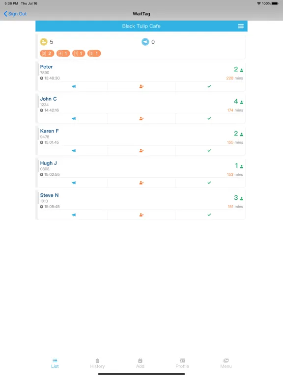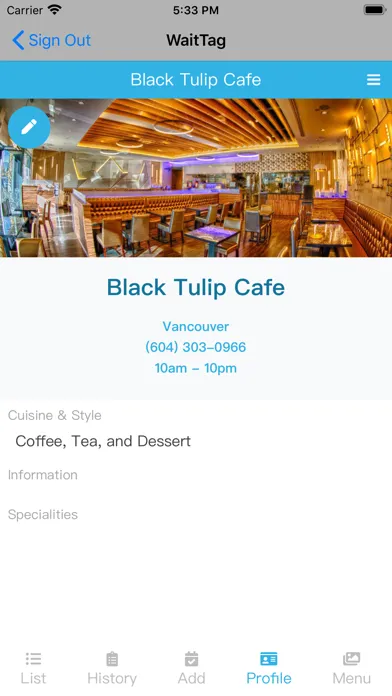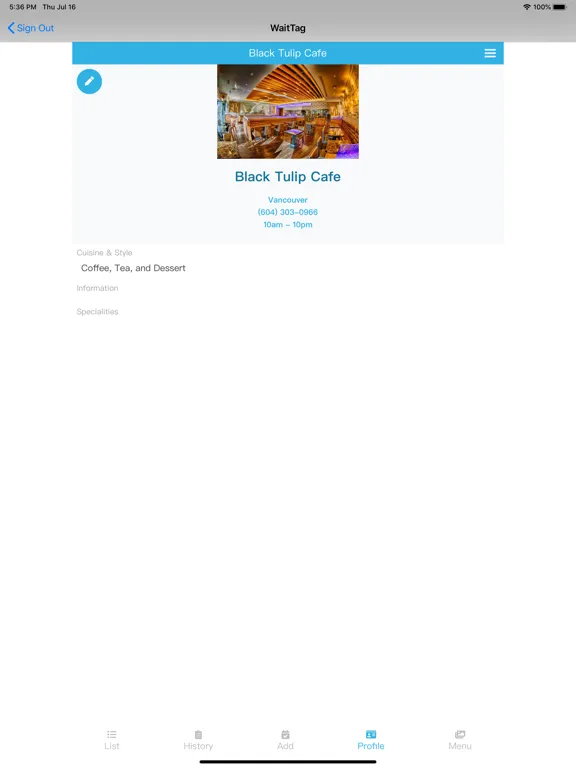 WaitTag is a digital waitlist / sign-in app for restaurants.