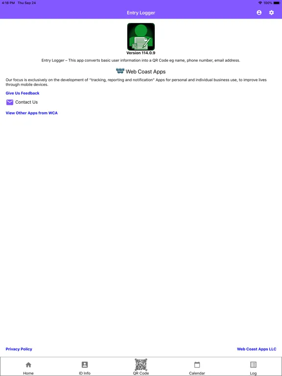 This useful app converts basic information about yourself into a QR Code. For Example, your name and phone number. The user is in full control of what information gets converted and who sees the information.