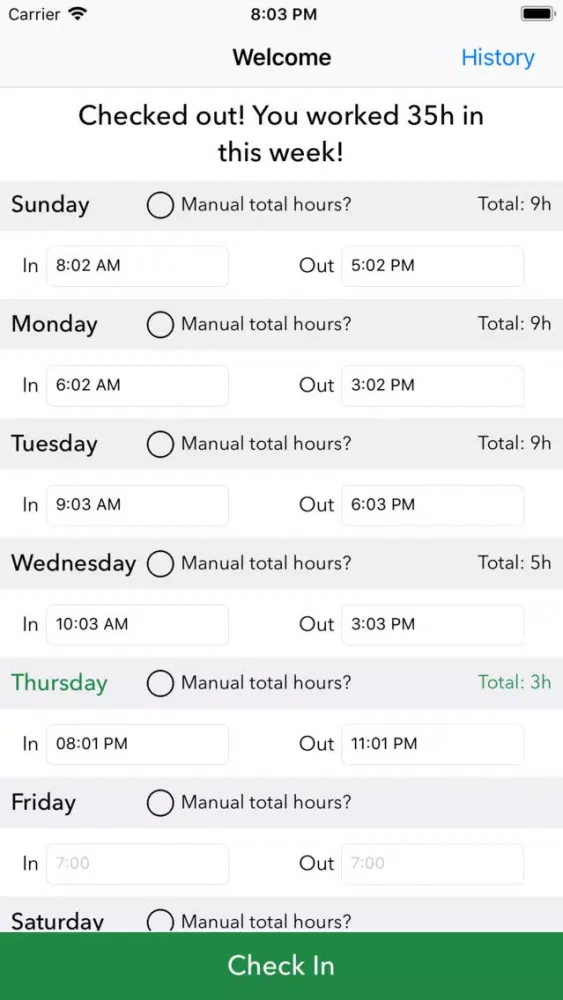 2. If you missed your checkin, checkout for some day then you can do manual checkin, checkout.