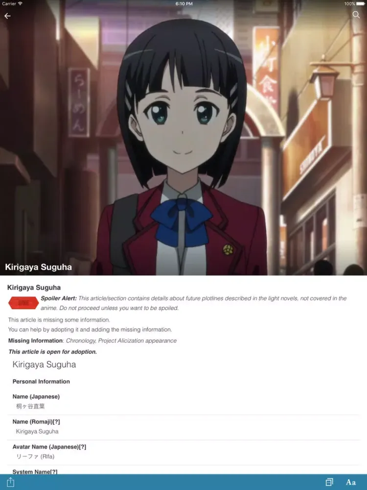 Fandom's app for Sword Art Online- created by fans, for fans. Sword Art Online app always features highly-accurate, real-time information from Fandom's passionate community of fans. You can expect to see hundreds of pages of content created by fans just like you. Find articles on universe, characters, terminology, timelines, Arcs, manga, anime, games, discography and much more. No other app offers this combination of companion features that allow you to: