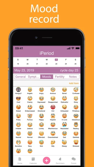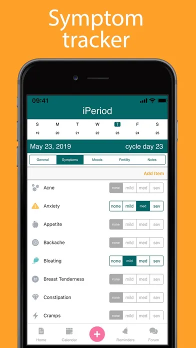 Let iPeriod® keep track! The most customization with more than 80 symptoms!