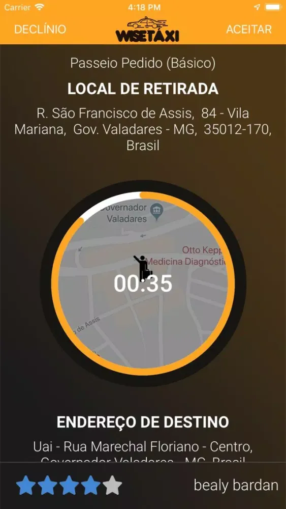 O nosso aplicativo permite ao taxista receber novas corridas e aumentar a receita diária. Aqui o taxista pode verificar endereço do passageiro antes de aceitar a solicitação. Caso precise, você pode ligar diretamente para o passageiro pelo aplicativo com as taxas da sua operadora. Os nossos passageiros são pré-cadastrados, dando maior segurança para todos. A forma mais rápida e moderna de receber corridas a qualquer momento e em qualquer local.