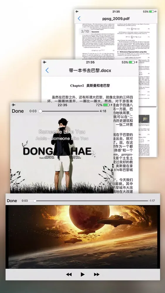 2)在手机上浏览各种图片、PDF、Office文档甚至RMVB/AVI等非苹果原生编码的视频