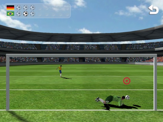 Match - Take a single shot on the goal while it is defended by the opposing team's goalkeeper. You will play both for the striker player and for a goalkeeper.