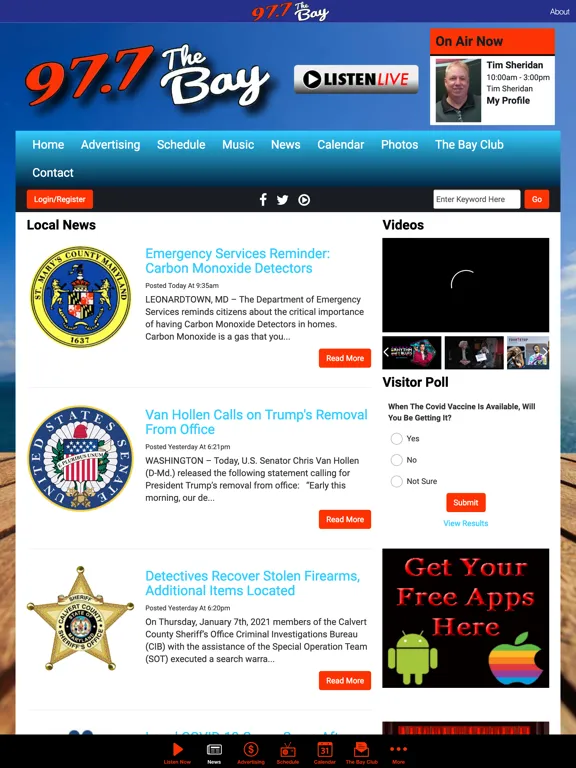 Classic HITS. Music of the 70s, 80s, and 90s. Southern Maryland’s local news, traffic, and weather radio station. Local school closings. Fox National News.