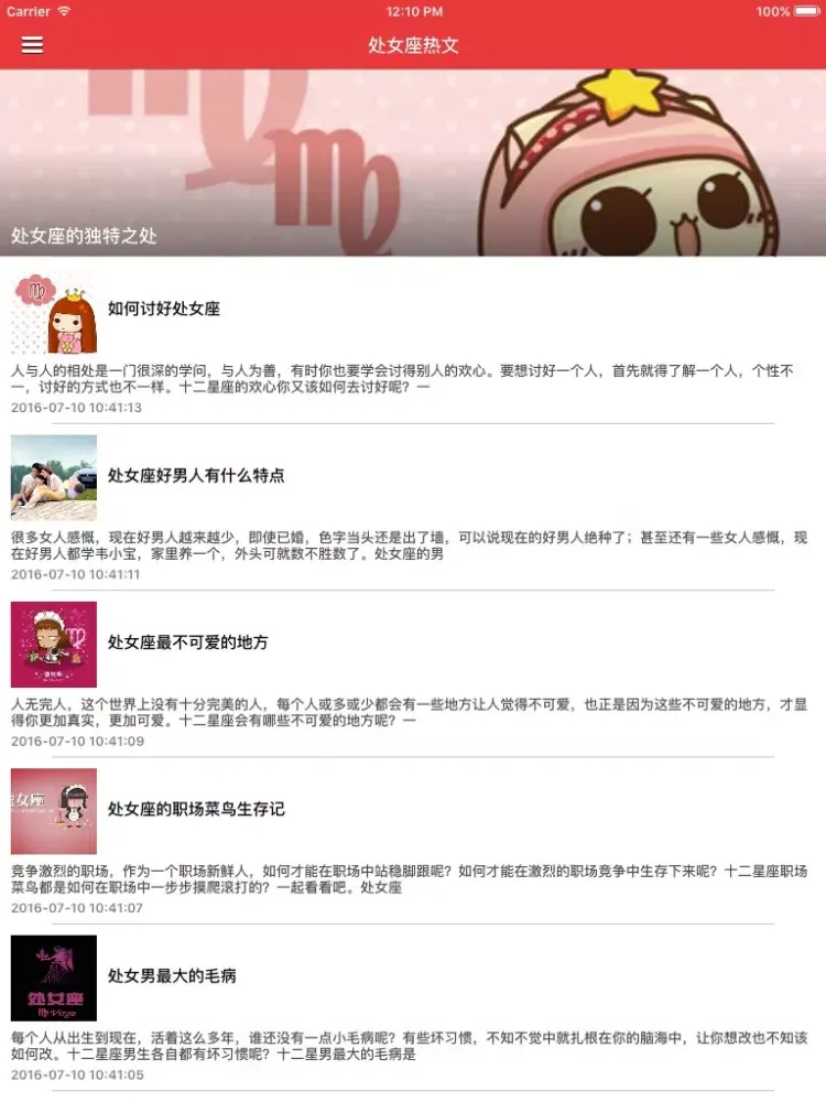صور 十二星座之处女座运势分析 - 处女座备忘录,2016星座查询-专业版 iPad