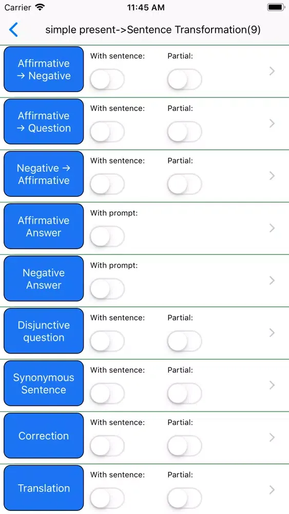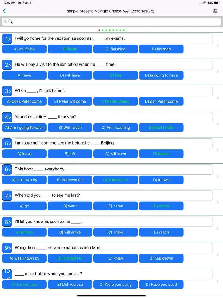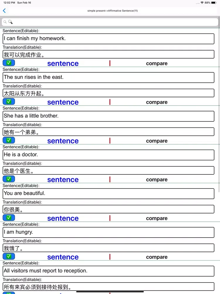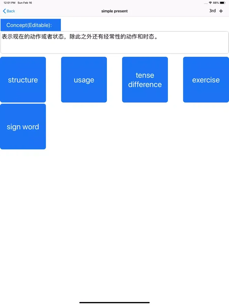 6、Software providers users with a lot of knowledges and exercises about the forms of verbs, such as the third personal, past tense, past participle, present participle.