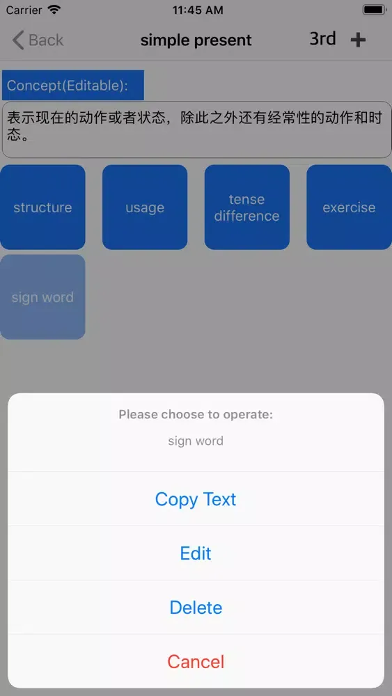 3、Software allows users to maintain their own grammar points by adding, deleting, updating and querying within a unique and flexible learning frame.
