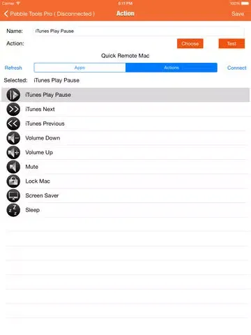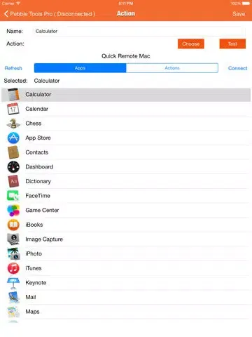 3. Select action on your Pebble Watch to run it