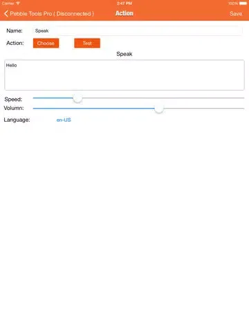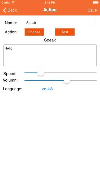 - Speak text ( Enter text to speak in the Setting Screen, you can set speak speed, volume and language )