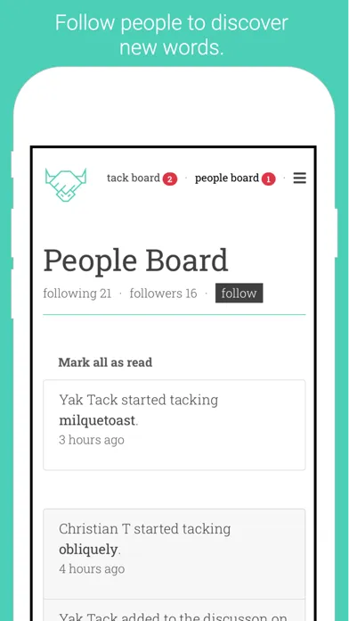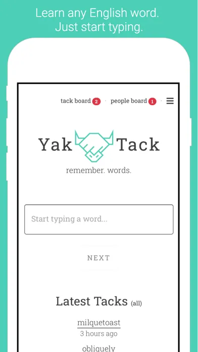 We've made it easy for you to connect with people on Yak Tack who are learning new words too. When they start tacking a new word, we'll tell you about it. They'll be your campfire friend.